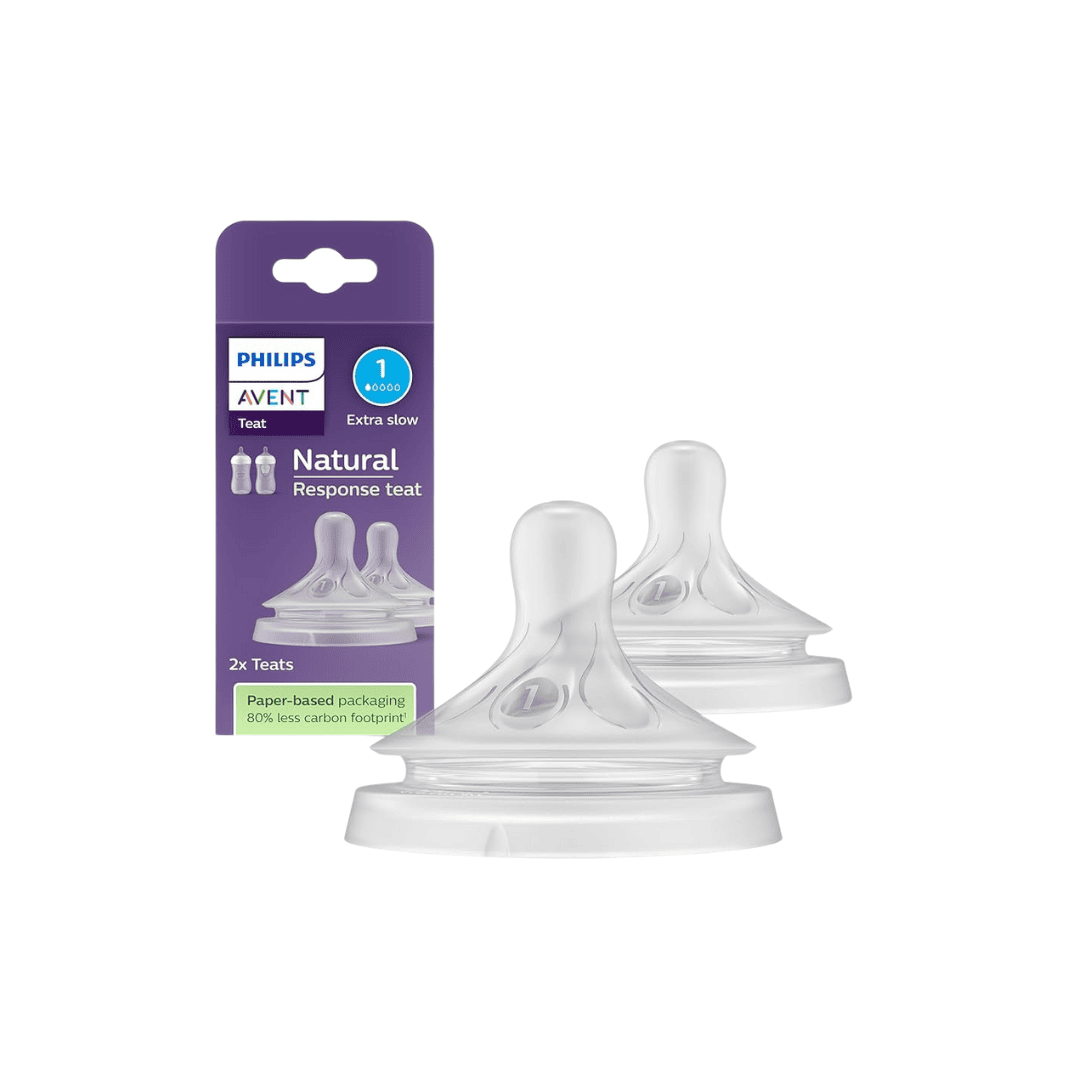 As Tetinas Philips Avent Natural Response T1 foram desenvolvidas para recém-nascidos desde o primeiro dia de vida. Libertam leite apenas quando o bebé suga ativamente, respeitando o ritmo natural de sucção, tal como no peito. São ideais para mães que desejam combinar amamentação e biberão de forma tranquila e segura.